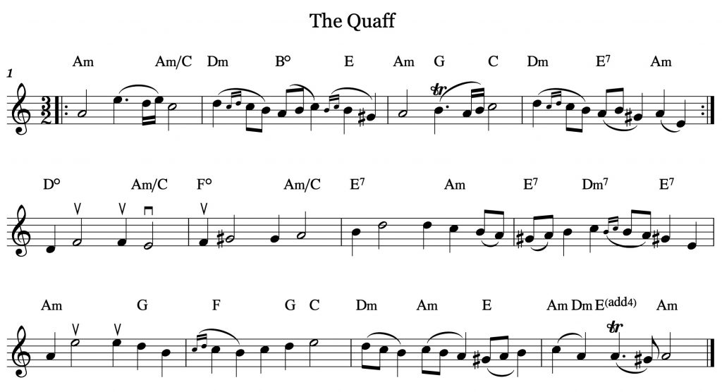 I wrote this tune as a change tune. Can you identify the original dance? It's quite a stately dance, but it's nice to play it with a bit of verve. Enjoy!